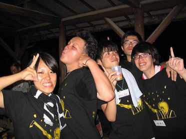 「バクテリアと大の仲良し」の矢野さん(左端)は環境課長に異動されていました。 |
